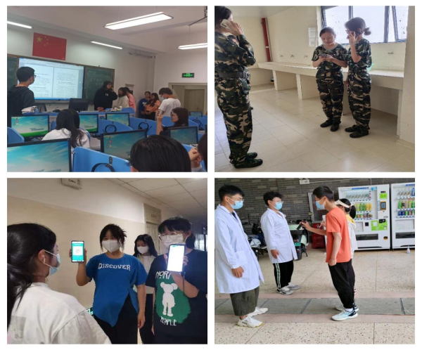 按照演练通知要求,各班同学分别模拟了四个场景:学生入校报到情景模拟、学生接到时空交集短信提示后的处置模拟、省外学生返校后发现当地健康码变黄码模拟以及学生在宿舍出现发热情况模拟。学院领导和老师也参与到此次演练活动的角色扮演中,与同学们一同演练了遇到不同情况时的具体处置流程,加深了大家对疫情防控应急处置流程的熟悉了解。