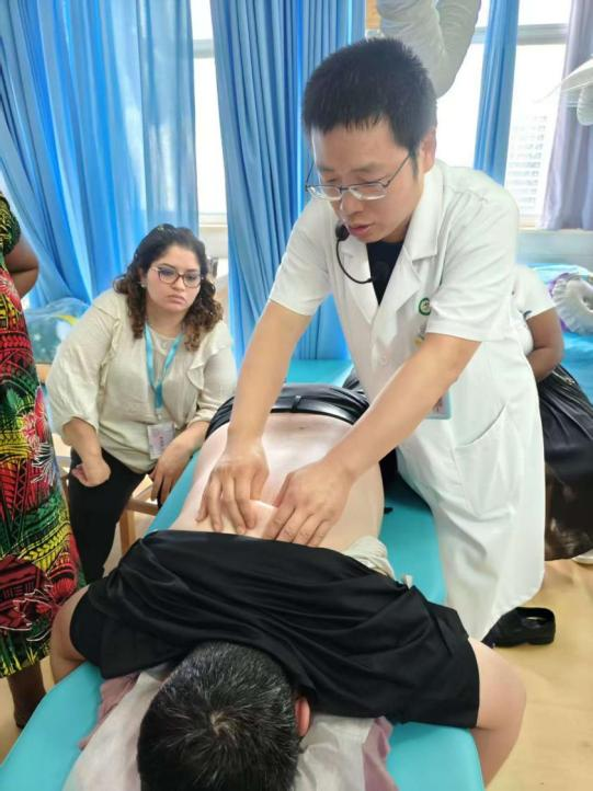 随后,交流团成员亲自体验了中医外治疗法的操作过程。在医护人员的指导下,他们尝试了推拿、针灸等手法,切身感受了中医技术的独特魅力。