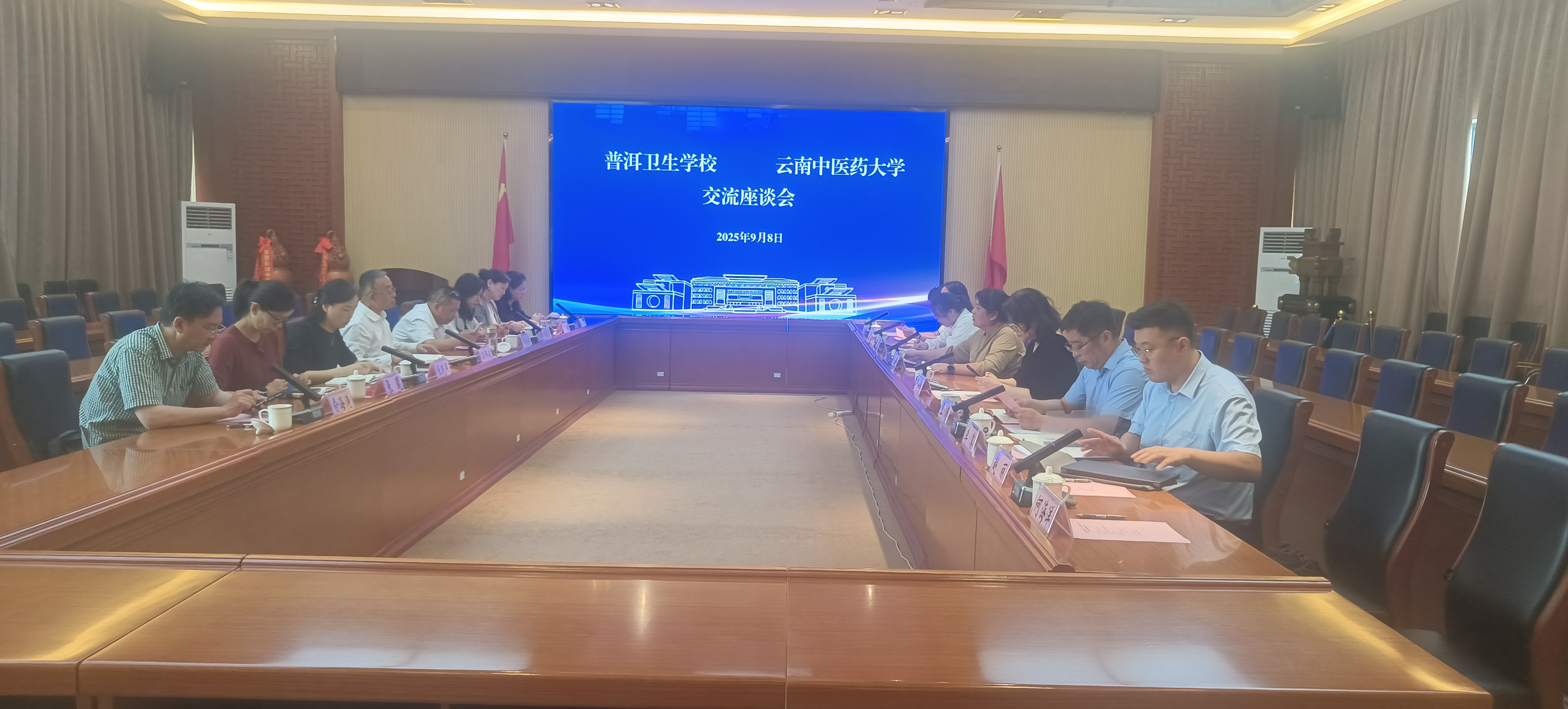 云中讯(办公室)2025年9月8日下午,普洱卫生学校党委书记何荣青一行到校,就深入推进双方合作事宜进行座谈交流。副校长温伟波主持交流会。3