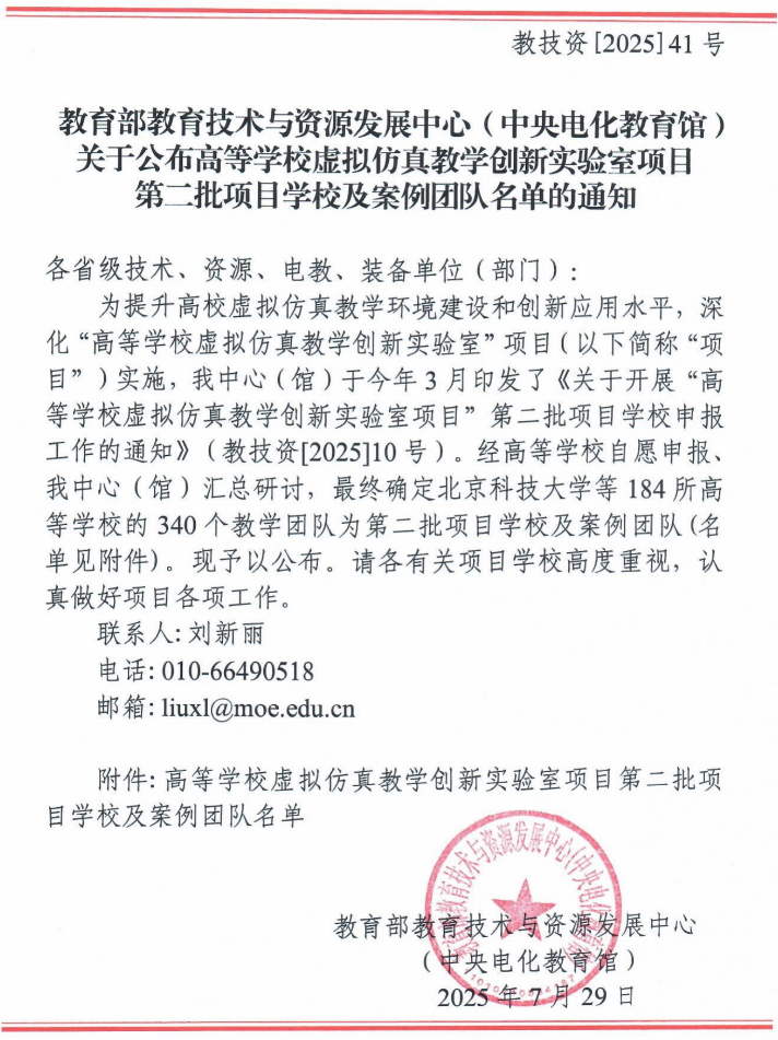 云中讯(第二临床医学院)近日,教育部教育技术与资源发展中心(中央电化教育馆)公布了“关于高等学校虚拟仿真教学创新实验室项目第二批项目学校及案例团队立项名单”(教技资〔2025〕41号文件)。米乐第二临床医学院郭村晓副教授团队申报的实验室项目“智慧化针灸推拿仿真教学创新实验室”获得立项。这是学校首次在教育部教育技术与资源发展中心(中央电化教育馆)实验室申报中成功立项,标志着学校在智慧化教学领域取得了重要突破。