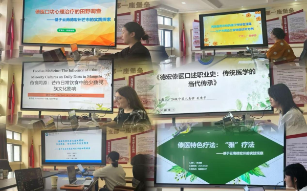 6位2024级硕士研究生依次展示了自己的田野调查成果,内容涵盖民族医学实践、民间疗法传承、中医药文化变迁等多个研究方向。中医西学研究所全体师生共同参与,同时也吸引了多个院系的同学共同聆听汇报。