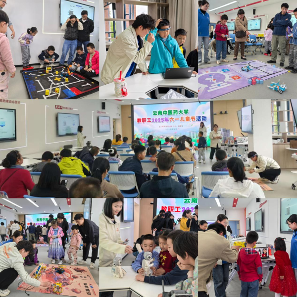 云中讯(校工会)为庆祝2025年“六一”国际儿童节,体现学校对教职工子女健康成长的关心关爱及对家风家教建设的重视,5月25日,校工会、妇联组织开展以 “AI智趣嘉年华、童心飞扬创未来”为主题的儿童节庆祝活动。活动充满科技与趣味,为孩子和家长们带来了一场别开生面的节日体验。40余名教职工子女参加活动,学校资产经营公司为孩子们精心制作了节日小蛋糕。