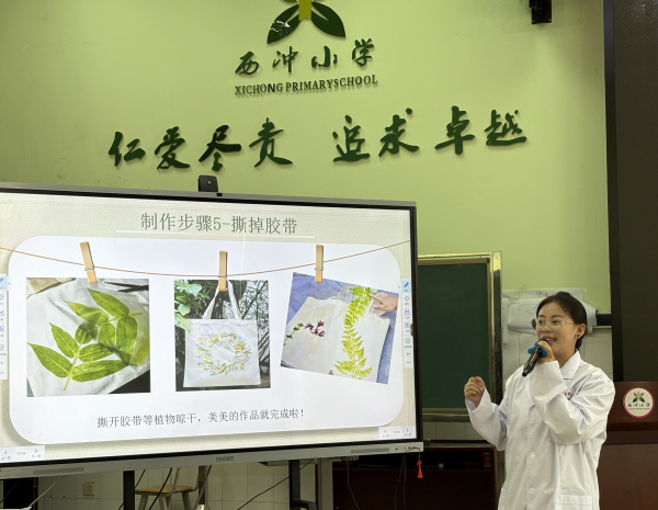 此次活动突破传统讲座模式,将中医节气养生理论与非遗植物拓染、香囊制作技艺深度融合。学院博士生党员郗域江以“端午时节中的中医智慧”为主题,用生动形象的画面和语言向孩子们讲解端午习俗中的中医药智慧,如挂艾草、吃粽子、佩香囊的防病养生原理,让孩子们在传统文化中读懂中医“治未病”理念。“原来端午节吃粽子、挂香包都是中医的智慧!”孩子们举着自己做的香囊兴奋地说。
