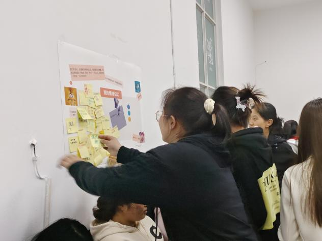 影片落幕,思考未止。围绕“我的情绪故事”主题,同学们展开真诚而热烈的交流分享,言语间传递出共同的领悟:未来将以更积极的姿态拥抱学习与生活,让乐观成为穿越挫折迷雾的航标灯。活动尾声,一面特设的“情绪墙”成为创意舞台,同学们执起画笔,将观影中最触动心弦的表情定格于此。一张张生动笑颜,不仅为故事会画上圆满句点,更映照出心灵对话后焕发的内在光亮。