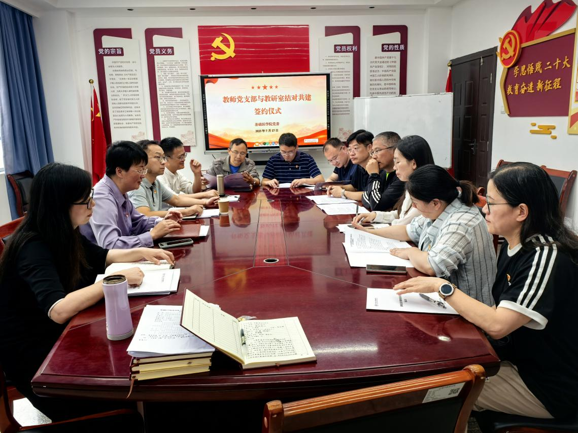 云中讯(基础医学院)为深入贯彻党的二十大精神,切实强化基层党组织建设,着力破解党建与教学科研“两张皮”难题,探索同向发力、互促共进的有效路径,7月17日,基础医学院党委开展了教师党支部与教研室“一对一”结对共建签约仪式。学院全体党委班子成员、教师党支部书记、教研室主任及教师代表共13人参加活动。