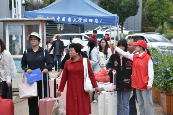 当天应报到的新生包括3018名本科生、第二批457名硕士研究生、55名博士研究生。为迎接新生到来,学校在一期、二期宿舍区主干道、迎新点周边及校园广场,精心布置了数十块主题鲜明、设计精美的迎新展板,成为校园里的“打卡亮点”,也为新生与家长定格初遇校园的珍贵时刻。学校在校门口开展特色义诊活动,用接地气的专业服务,让远道而来的新生与家长真切感受中医药的魅力,也传递学校的热忱关怀。