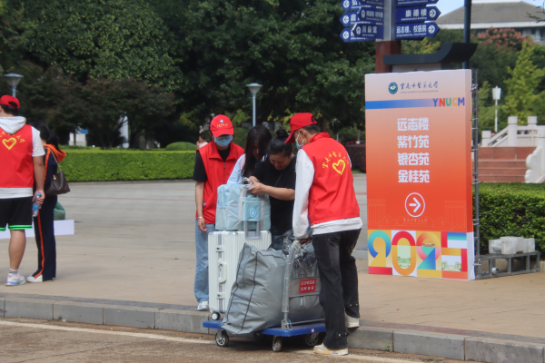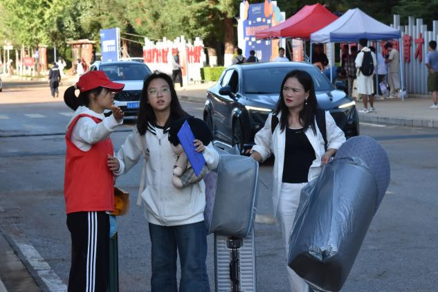 迎新现场,随处可见身着“志愿红”的学生志愿者,他们是来自各学院的学长学姐。从校门口的行李搬运、报到流程指引,到宿舍楼下的路线讲解、生活用品代购,志愿者们用热情与耐心,成为新生入学的“引路人”。“看到学长学姐这么热心,我一点都不紧张了,还提前了解了很多校园生活小技巧。”基础医学院2025级中西医临床1班新生张毕祥说。
