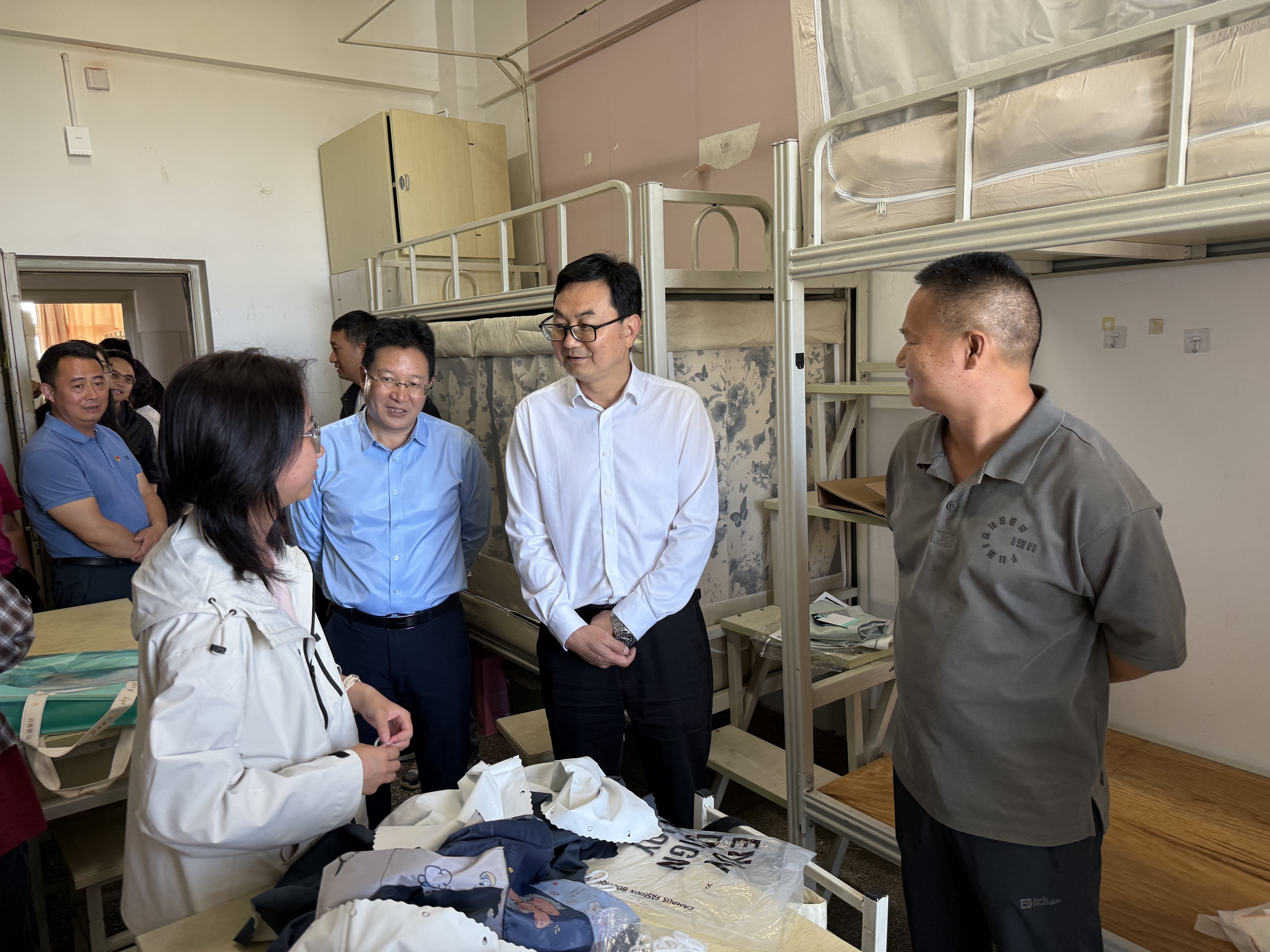 迎新当日,校领导分两组来到迎新现场,了解新生报到和服务保障情况,与新生及家长亲切交流。校党委书记邱勇、校党委副书记杨鹤清带队先后走访检查一期商铺、学生宿舍(紫竹苑、银杏苑、金桂苑)、食堂(二食堂、清真食堂),慰问新生,了解学校保障工作。校长丁中涛、副校长邰先桃带队走访二期学生宿舍(景天苑、熟地苑)、商铺、食堂(四食堂)等地,了解新生入校情况,召开“校长与新生家长面对面座谈会”,介绍办学特色、人才培养模式与就业前景,认真倾听家长关于孩子学习生活、专业发展的疑问与建议。